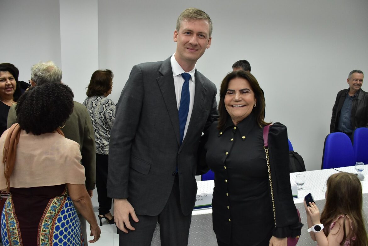 Representando a Câmara Municipal de Feira de Santana, a presidente do Legislativo feirense, vereadora Eremita Mota (PSDB), prestigiou, na tarde desta segunda-feira (19), a cerimônia de posse do novo delegado da Receita Federal da cidade, o auditor Gustavo Breitenbach. Ele substitui Samuel Pereira, que atuou à frente da delegacia nos últimos seis anos. A solenidade foi realizada na sede da Receita Federal e contou com a presença de autoridades de diversos âmbitos, além de dirigentes de entidades educacionais e empresariais.