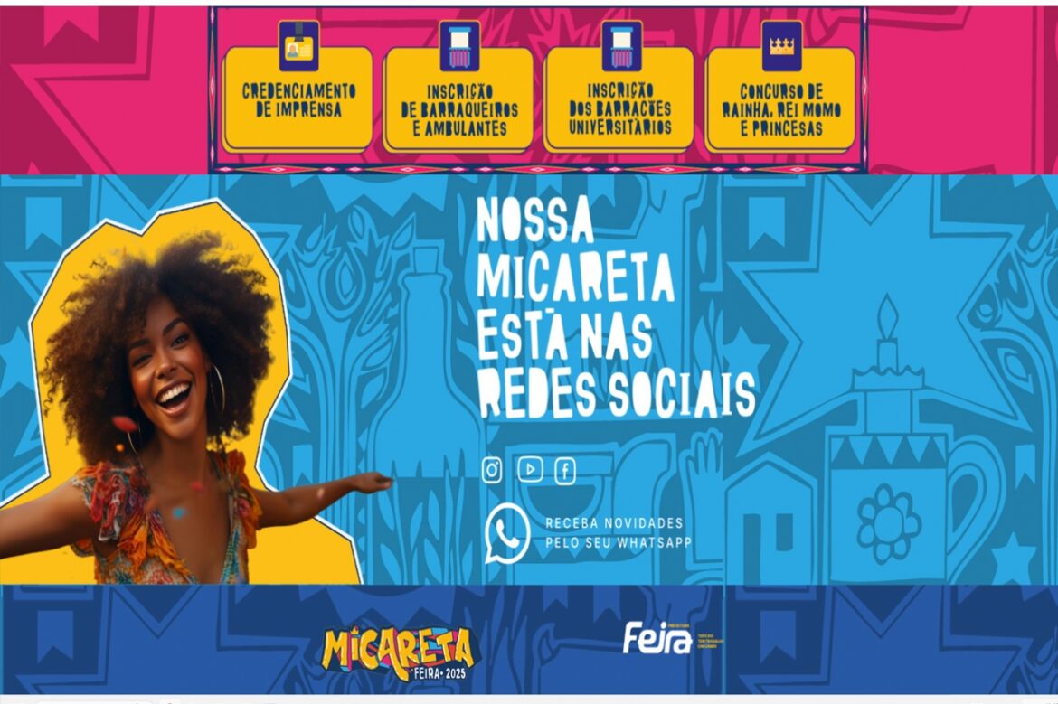 O processo de cadastro pode ser feito pelo site oficial do evento, https://micaretadefeira.ba.gov.br/, na seção “Credenciamento de Imprensa”, ou através do WhatsApp Oficial da Prefeitura, pelo número (75) 99867-4432, clicando na opção “Credencial/Imprensa”.