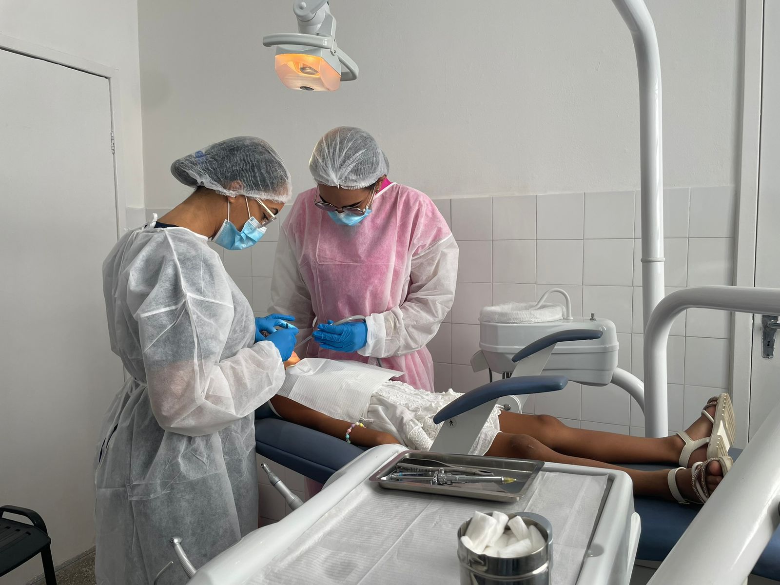 Ao todo, mais de 15 pessoas passaram por cirurgias bucais ao longo da manhã. Os atendimentos foram conduzidos por uma equipe composta por cirurgiã-dentista e auxiliar de saúde bucal, além de outros profissionais, como serviços gerais e administrativo, assegurando organização, segurança e qualidade na assistência prestada.
