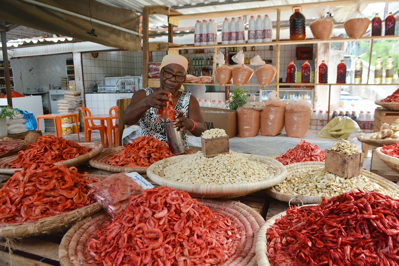 Frutos do mar e ingredientes do tradicional caruru e vatapá no precinho