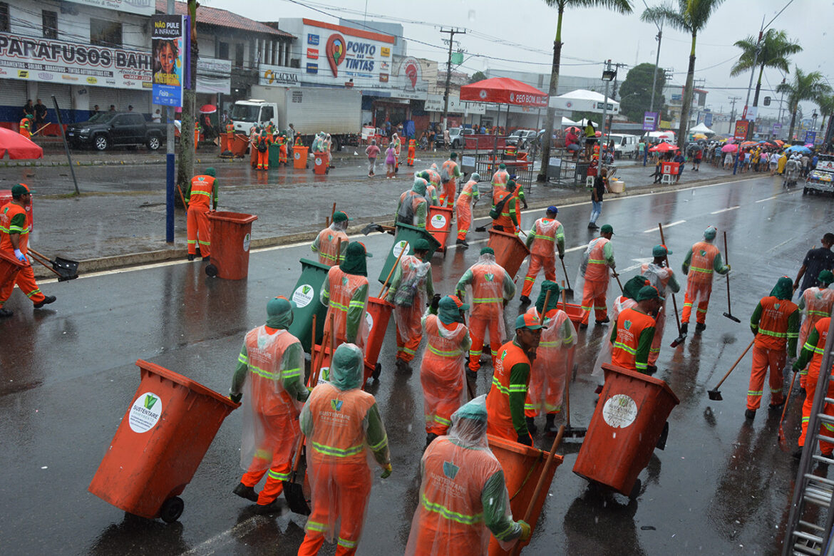 Após quatro dias de intensa festa, a Avenida Presidente Dutra, onde está localizado o circuito Maneca Ferreira, voltou a brilhar graças ao trabalho dedicado da equipe de limpeza da Secretaria Municipal de Serviços Públicos (SESP). Logo após o encerramento oficial da Micareta de Feira de Santana, os agentes entraram em ação com vassouras, pás, sacos coletores e o reforço de um caminhão hidrojato, responsável por lançar jatos de água de alta pressão para garantir a limpeza pesada do asfalto.