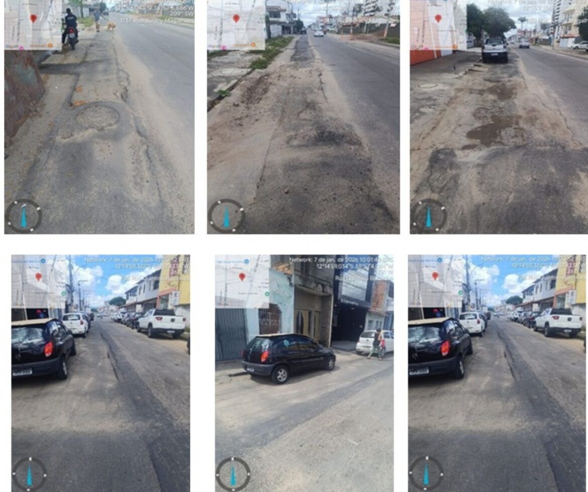 Na rua Juracy Magalhães, no bairro Ponto Central, a Agência Reguladora observou que a Embasa cortou o pavimento para realizar serviços e apesar de ter feito a recuperação do pavimento, deixou o mesmo em desacordo com o que preconiza a legislação municipal, segundo a qual, a qualidade do serviço deve ser igual ou superior à qualidade do asfalto anterior. Entretanto, no local o pavimento apresenta desnivelamento em diversos pontos, alé de ter cedido em grande parte da via.