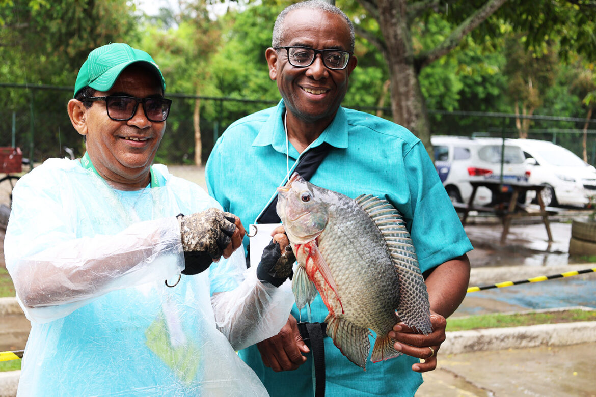 A chuva que caiu na manhã deste sábado, em Feira de Santana, influenciou os resultados da Pesca Solidária, realizada na lagoa do Parque Erivaldo Cerqueira. Entretanto, os mais de 200 quilos de peixes capturados foram comemorados, dadas as condições climáticas.