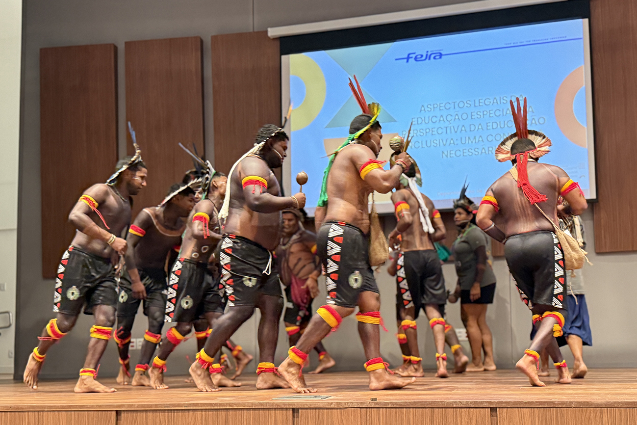Além da exposição, o grupo realizou uma apresentação cultural no Auditório da secretaria. As atividades seguem ao longo da semana, com visitas às escolas da rede municipal, onde os indígenas irão apresentar sua cultura, promovendo o diálogo, o respeito e a valorização dos povos originários. A iniciativa integra as ações da Seduc voltadas à valorização da diversidade. (SECOM/PMFS)