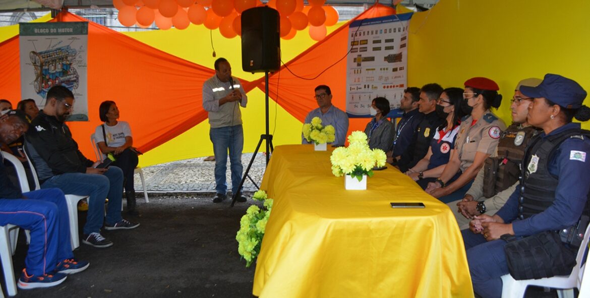 Com uma extensa programação que segue até o próximo domingo, 25, foi aberta em Feira de Santana a Semana Nacional de Trânsito. Este ano o evento traz como tema: “Juntos salvamos vidas!”. O ato de abertura das atividades aconteceu em um dos estandes montados no estacionamento da Prefeitura, na tarde desta segunda-feira, 19. Representando o prefeito Colbert Martins Filho, o superintendente municipal de Trânsito, Cleudson Almeida, destacou a importância da retomada da iniciativa, que não aconteceu nos últimos dois anos em decorrência da pandemia da Covid-19.