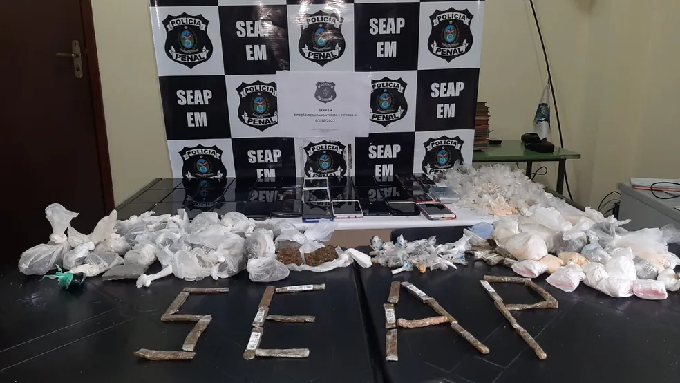 Inspetores de Polícia Penal apreenderam nesta segunda-feira (3) um simulacro de revólver, 36 celulares e grande quantidade de drogas durante revista no Presídio Evaristo de Moraes, conhecido como Galpão da Quinta, em São Cristóvão.