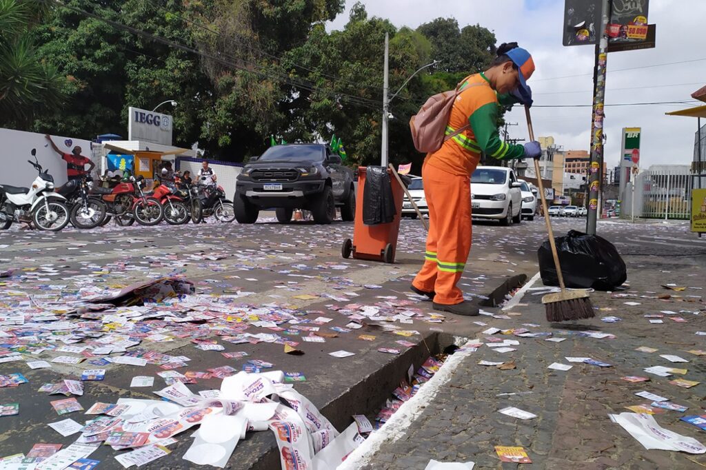 Carrinhos de coleta, sacos plásticos e vassoura em mãos. Os agentes de limpeza entraram em ação logo após encerrar o pleito deste domingo, 2. A Secretaria Municipal de Serviços Públicos (Sesp) disponibilizou 14 equipes com 15 agentes em cada uma delas para recolher os materiais de propaganda de candidatos.