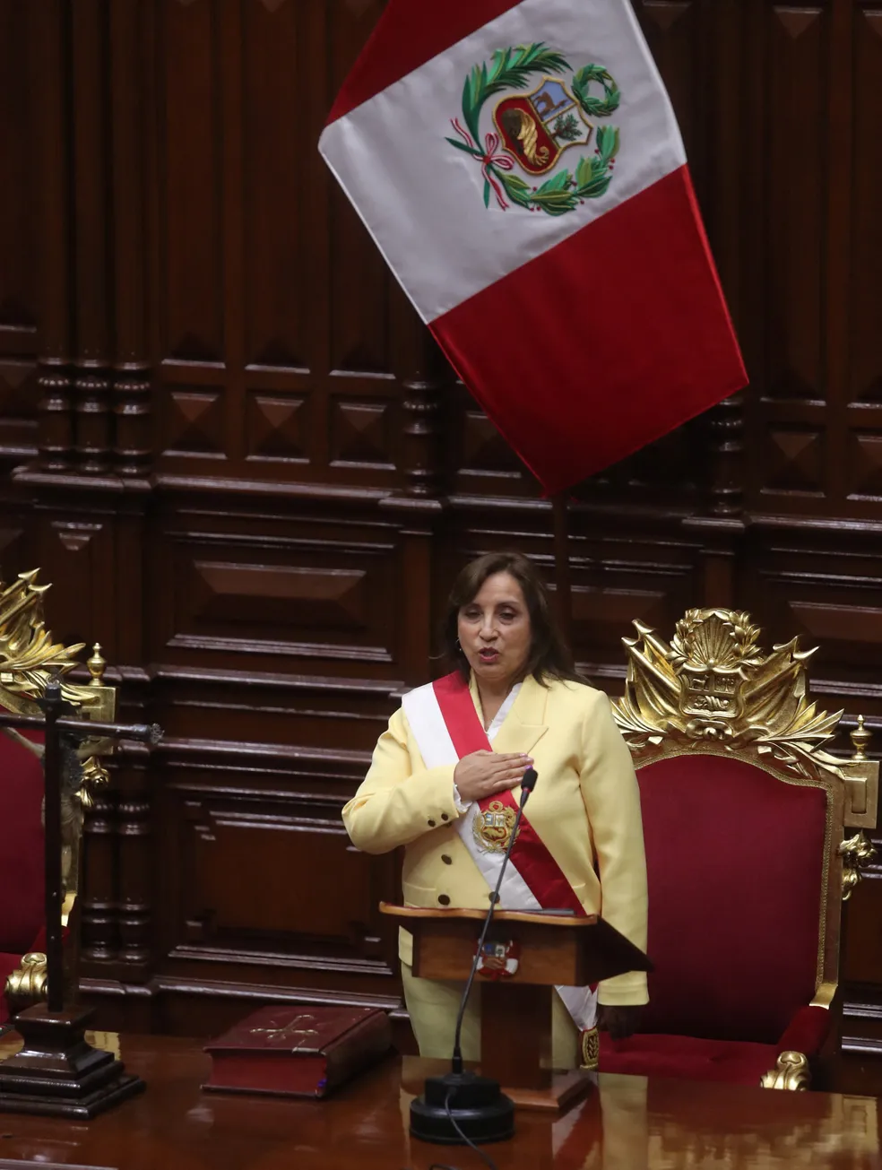 Ao assumir, Dina disse que houve uma tentativa de golpe de Estado de Pedro Castillo, e que o Congresso evitou isso.