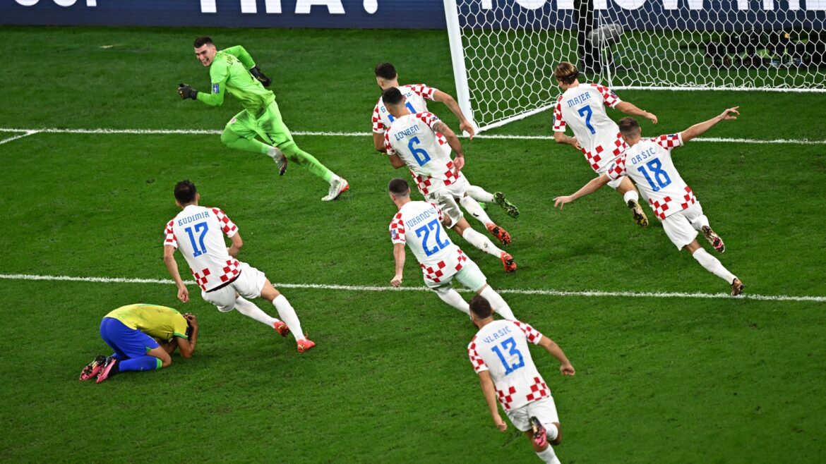 A Seleção Brasileira começou as penalidades desperdiçando o primeiro pênalti, após finalização de Rodrygo. O segundo erro aconteceu após um chute de Marquinhos. Com quatro cobranças convertidas, a Croácia avançou para as semifinais da Copa do Mundo.