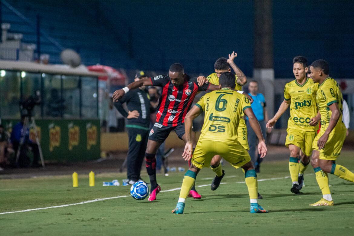 Jogando fora de casa, o Vitória demorou a se encontrar na partida e sofreu em boa parte da primeira etapa. Logo aos 6 minutos, Gabriel teve uma chance claríssima de abrir o placar para o Mirassol após cruzamento de Fernandinho, mas Lucas Arcanjo mostrou um poder de reação incrível e praticou um milagre para evitar que os donos da casa saíssem na frente.